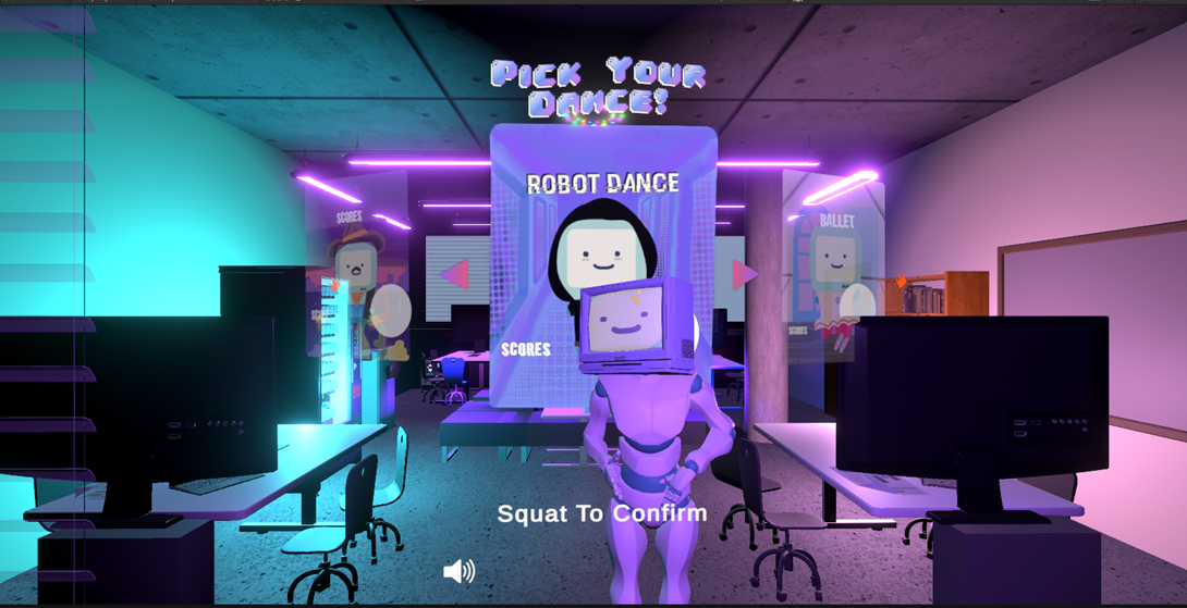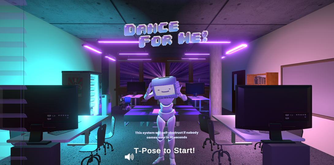 where players copy our character Dellboi, a 3D model's dance moves and get instant feedback using Mediapipe.